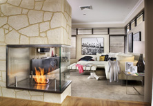 When you live in New England enjoying the beauty and warmth of a fireplace is not just for the ambience. But it sure can be with some of our products. We carry the finest selection of customizable burner kits and complete fireplaces for our clients. Whether its to keep out the weather or to liven up your landscape design there are a number of fuel options and design selections to choose from. If you seek a very contemporary, transitional or traditional design there are products in our showroom to suit your needs. Additionally our talented design team can come up with the perfect stone surround, custom metal fabrication or burner installation to make you feel at home. We can use natural gas, wood, ethanol or propane to make your room feature or outdoor installation an exciting feature of your home and garden.